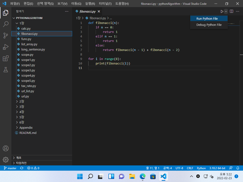 Python 예제 파일 열고 실행하기