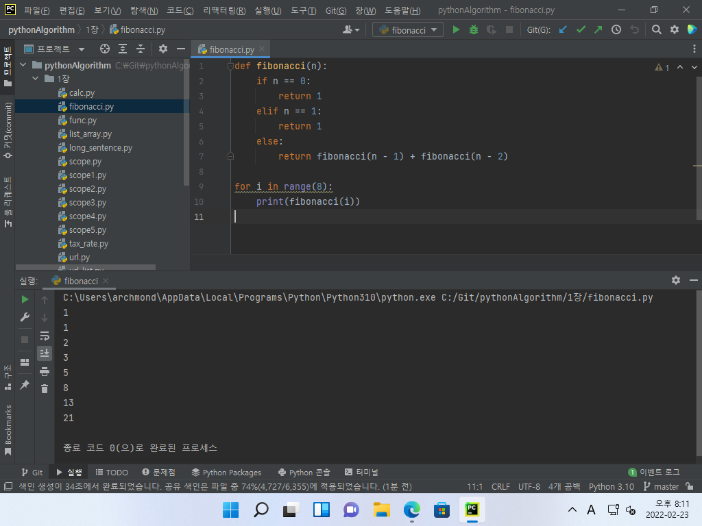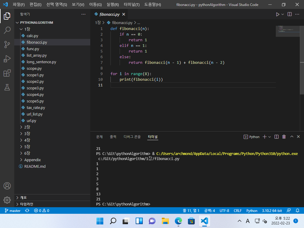 ▼ 하단 터미널에 Python 실행 결과가 나타납니다.