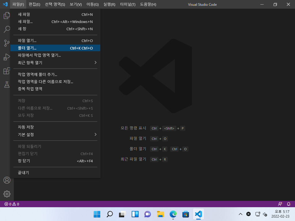 ▼ VSCode에서 예제 파일이 위치한 폴더를 엽니다.