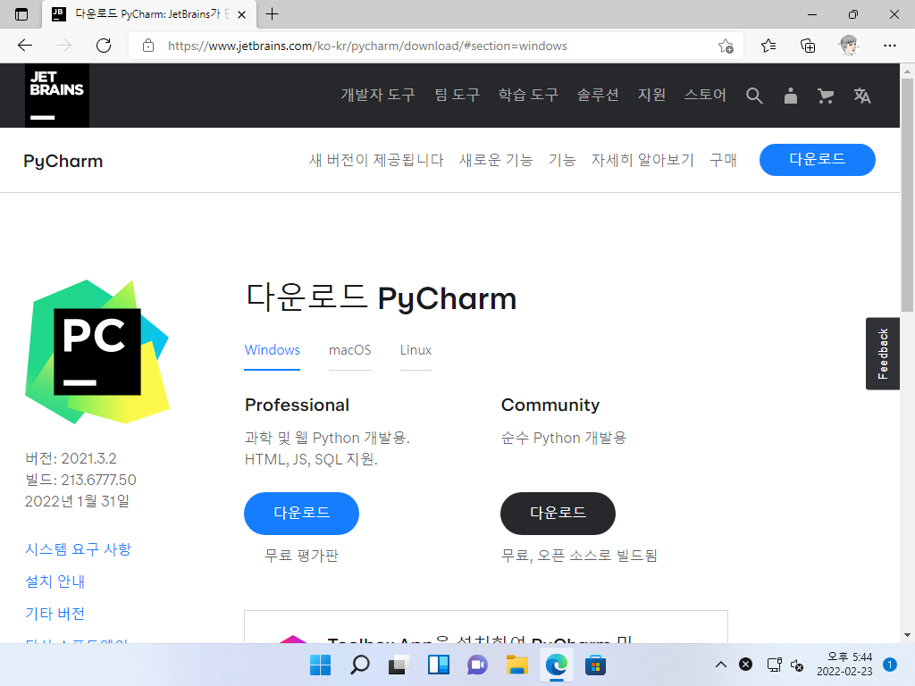 PyCharm 다운로드 및 설치하기